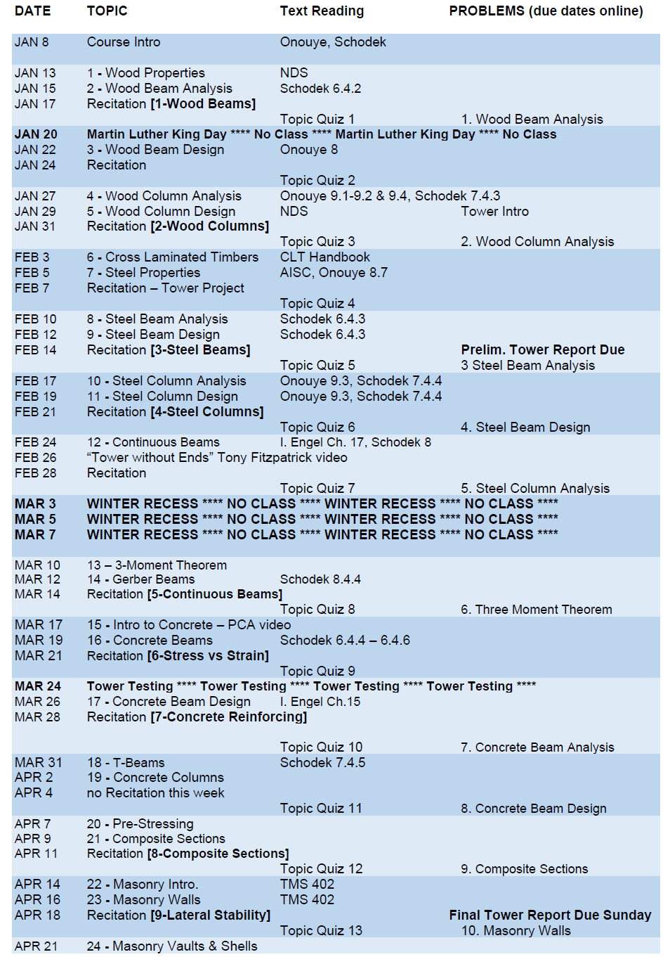 This course covers the basic principles of elastic behavior for different materials such as wood, steel, concrete and composite materials, and compares the properties and applications of materials generally. It investigates cross sectional stress and strain behavior in flexure and in shear, and torsion as well as the stability of beams and columns. The qualitative behavior of combined stresses and fracture in materials is also covered. Prerequisite: ARCH 314